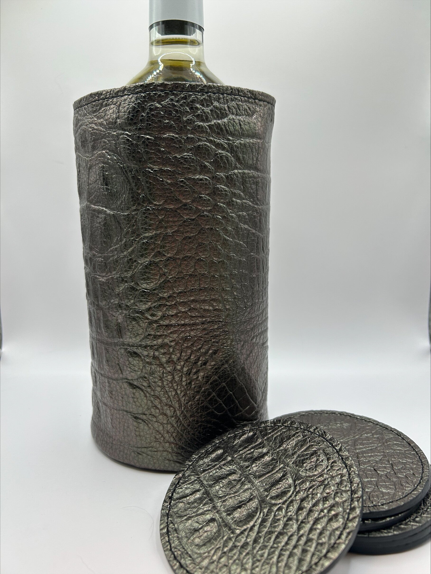 Voeg een vleugje elegantie en functionaliteit toe aan uw wijnervaring met deze prachtige handgemaakte lederen wijnkoeler. Ambachtelijk vervaardigd uit hoogwaardig leer, is deze koeler niet alleen een lust voor het oog maar ook uiterst praktisch.
