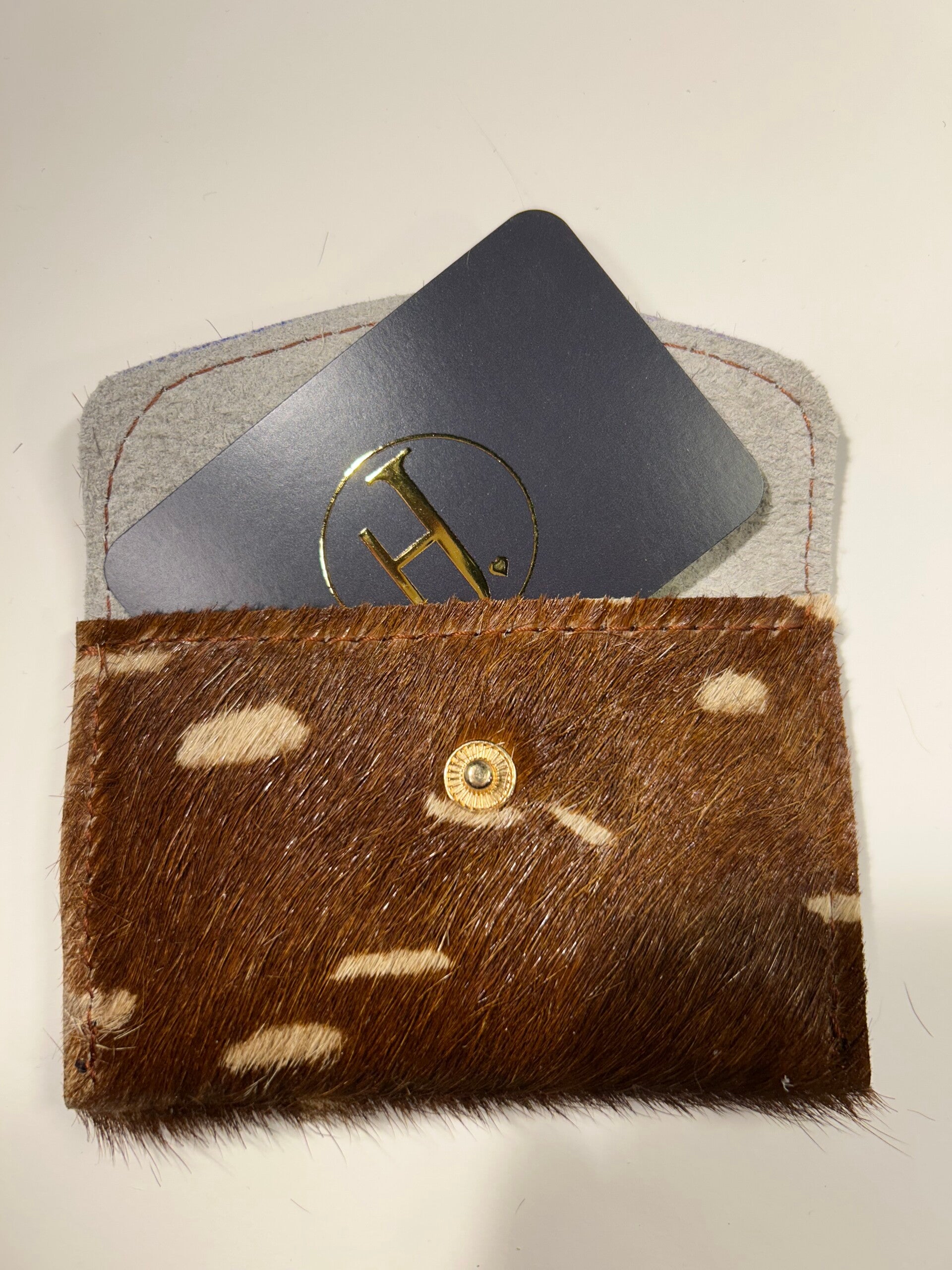Stijlvol, compact en praktisch. Deze handgemaakte lederen kaarthouder is perfect voor het veilig opbergen van uw belangrijkste kaarten. Met een elegant design en een stevige drukknopsluiting biedt deze kaarthouder zowel functionaliteit als een vleugje luxe, ideaal voor dagelijks gebruik.